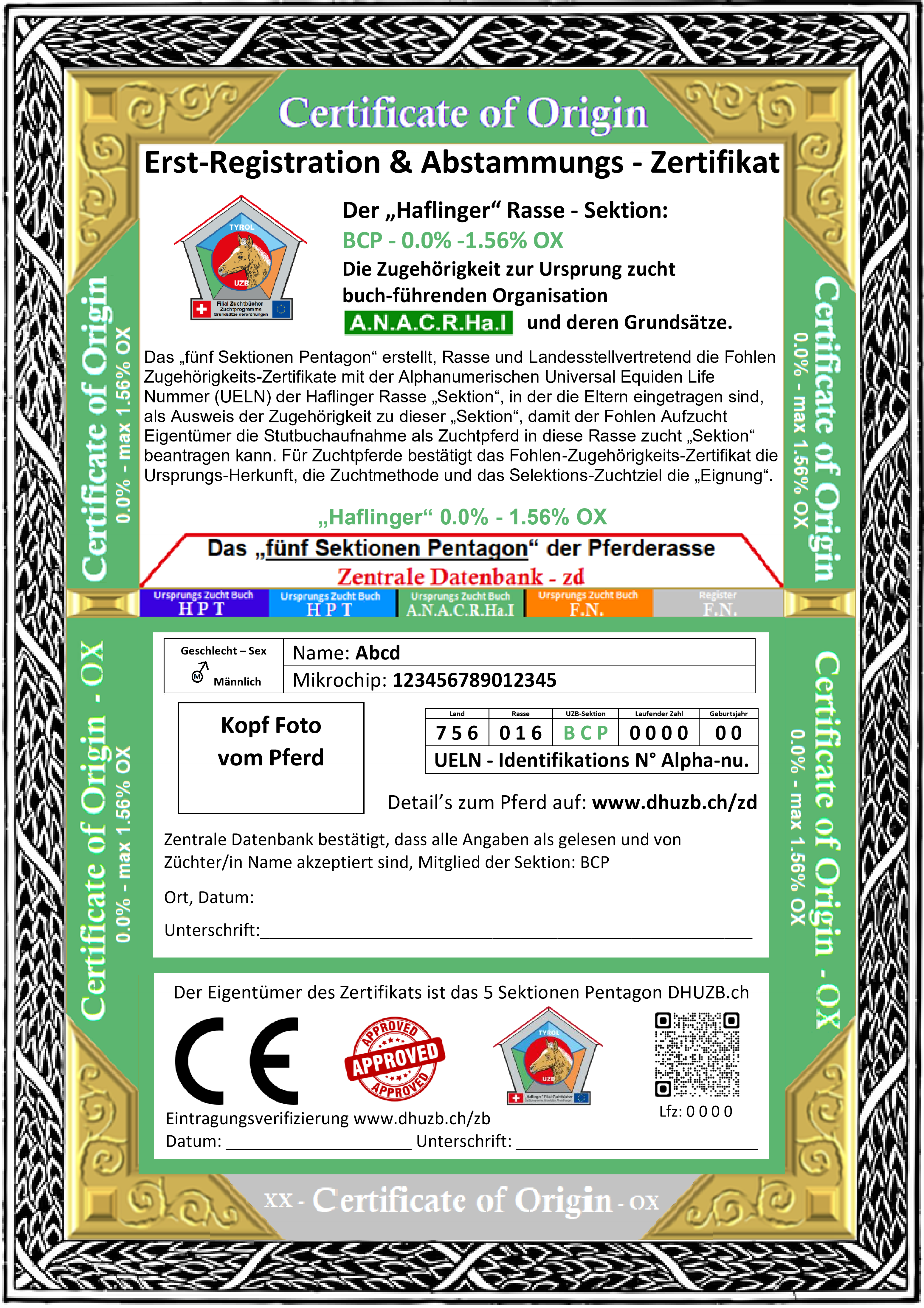 UELN – 756 016 BCP + (laufende Zahl. der Rasse Erstregistration) #### + (Jahrgang des Pferdes) ##